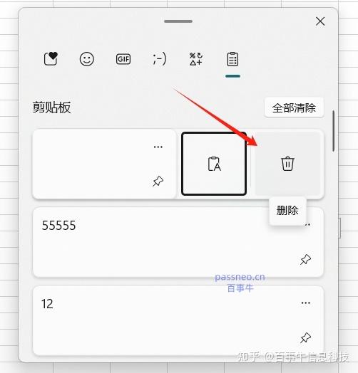 1.清理剪贴板:按下快捷键【Windows+V】打开剪贴板历史记录,删除不需要的项,保持剪贴板清爽。