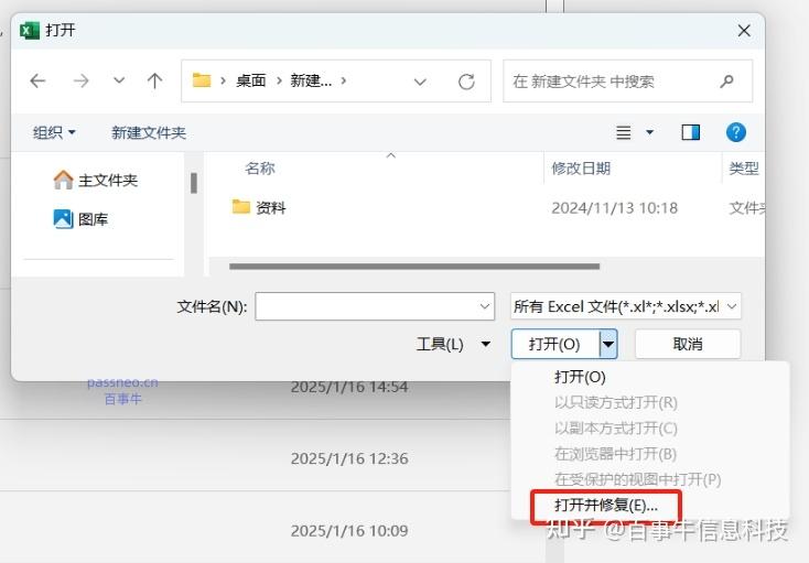 2.修复Excel文件:如果文件损坏,可以尝试修复文件。在打开Excel时,选择“文件” > “打开” > 选择要修复的文件,点击箭头旁的下拉菜单,选择“打开并修复”。