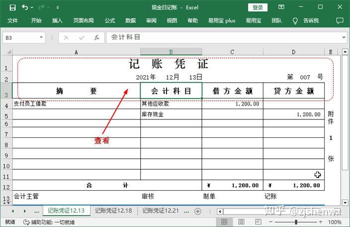 单击“记账凭证12.13”工作表标签,查看第2张记账凭证的日期、编号等相关数据。