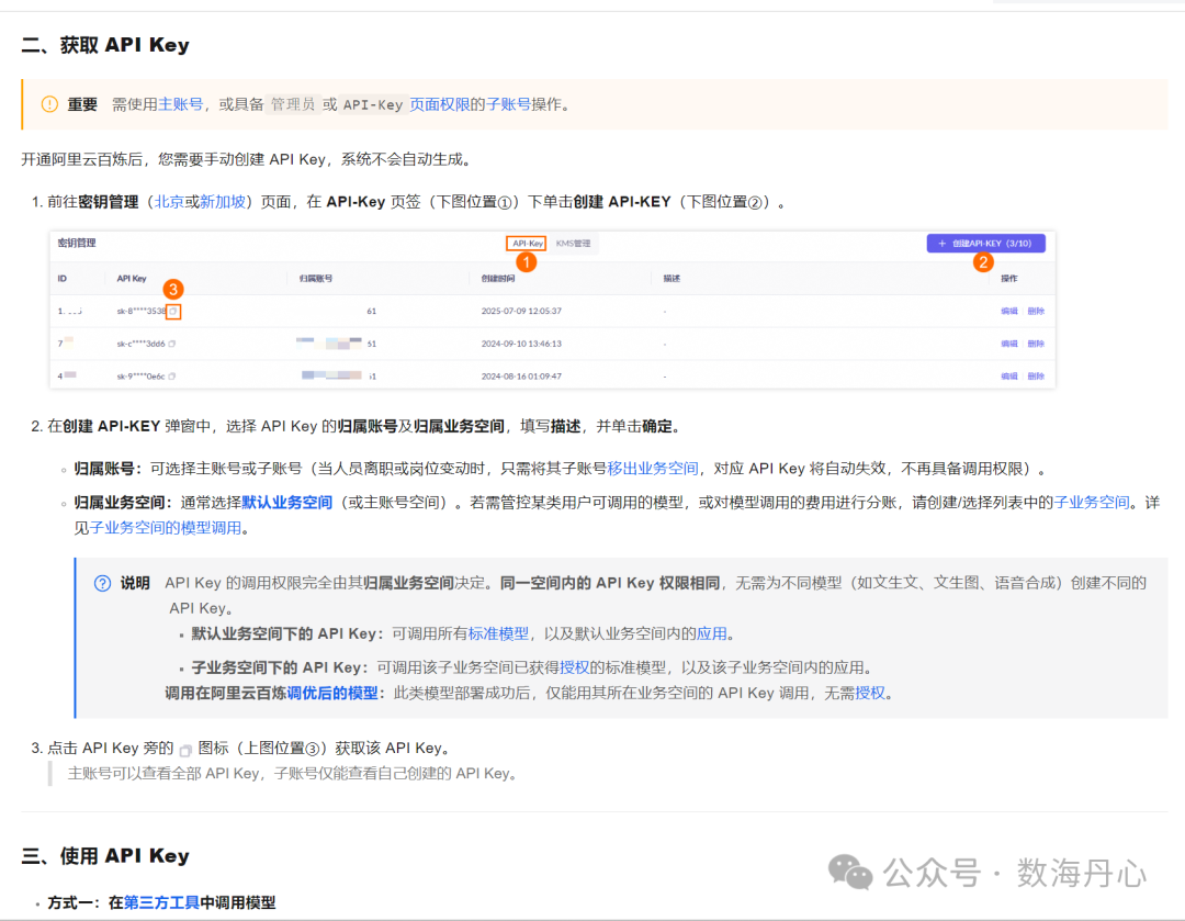 获取API Key:访问阿里云帮助文档获取您的API Key【https://help.aliyun.com/zh/model-studio/get-api-key】。
