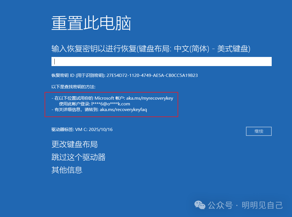 看到锁后,最常遇到两个需求:要么想重置系统,要么想读 C 盘数据,这时候都要用到「恢复密钥」,具体怎么找、怎么用,一步一步来: