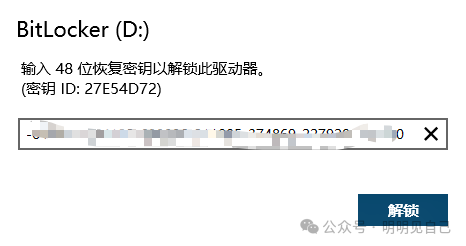 1. 到这一步会弹出 “输入 BitLocker 恢复密钥”—— 别慌,密钥早存好了,只是你没注意。