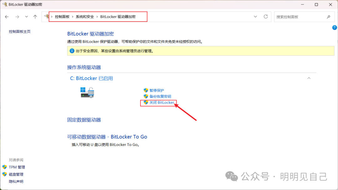 三、不想用加密?3 步关闭 BitLocker