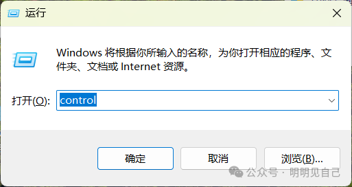 打开运行,输入control,点击确定打开控制面板。
