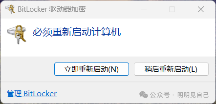 1. 最后重启电脑 —— 重启后系统会在后台加密,不影响正常用,等提示 “加密完成” 就好。