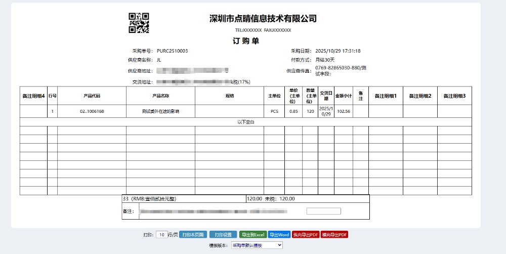 [点晴模切ERP]如何在采购单上显示或体现已交数量、未交数量以及订单状态(是否正常结案)?