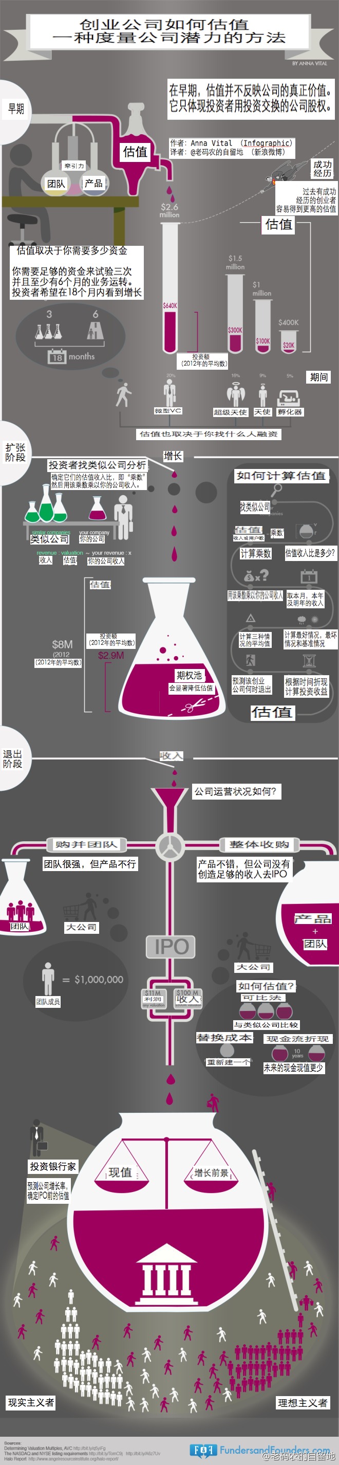 估值对创业者很重要,因为它决定了他们在换取投资时需要交给投资者的股权。在早期阶段公司的价值接近于零,但估值要高出不少。为什么呢?比方说,你正在寻找在10万美元左右的种子投资,换取您公司的10%左右的股权。这是典型的交易。那么,你的投资前估值将是100万美元。然而,这并不意味着你的公司现在价值100万美元。你很可能卖不出这个金额。在早期阶段的估值更多看重的是增长潜力而不是现值。