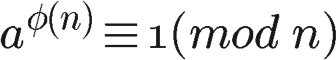如果两个正整数a和n互质,则n的欧拉函数 φ(n) 可以让下面的等式成立: