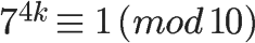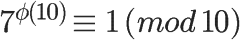 已知 φ(10) 等于4,所以马上得到7的4倍数次方的个位数肯定是1。