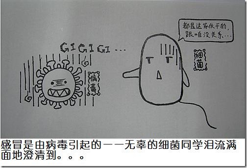 感冒是一种上呼吸道感染,是由病毒引起的。这也是在算不上什么新知,但我不禁想要强调它。感冒是由病毒引起的,也就是说只能杀灭细菌的抗生素对感冒不会起作用。我曾在网络上看到过一篇广为转载的所谓“感冒用药指南”,其中提 到了很多所谓的“消炎药”,而其实这些药都是抗生素。由此可见,人们对于这些药的使用还是存在不少误解。在治疗单纯的感冒中使用抗生素起不到任何治疗作用,而且可能增加不良反应和肠道细菌的耐药情况,有害无利。即使在患感冒的同时发生了细菌感染,需要使用抗生素,也必须由医生决定如何使用,患者不应自行 使用。这一点请大家务必注意。