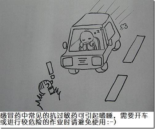 使用抗过敏药需要注意的是,常用的此类药物都有让人嗜睡的副作用,吃了它难免昏昏沉沉。因此,在开车或需要进行危险操作(高空作业、操纵机械、在峡谷间挑战个走钢丝之类的)时请不要使用含有抗过敏成分的药物,以免精力无法集 中,一不留神发生意外。而日常可见的分为日片和夜片的感冒药(如白加黑、日夜百服宁等),其中的日片“不瞌睡”的秘诀也就在于去除了抗过敏的成分(说实 话,这个真没技术含量)。这种感冒药的日片在开车等等时候也可以放心使用,不过相应的症状也就得不到缓解了。
